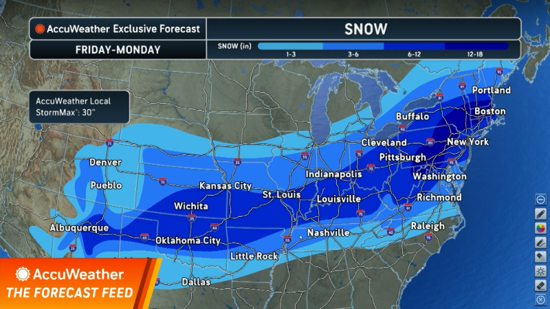 Massive snowstorm to bury areas from Oklahoma City to NYC, Boston