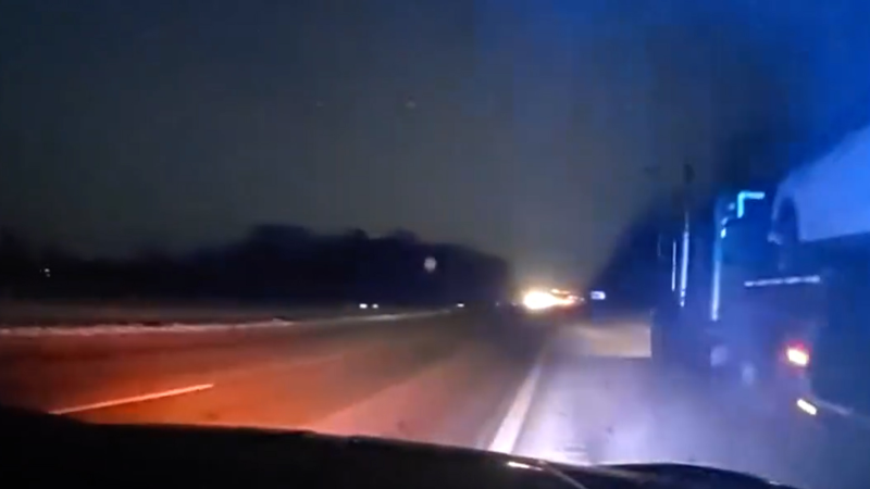 Semi narrowly misses cruiser at snowy I-76 crash