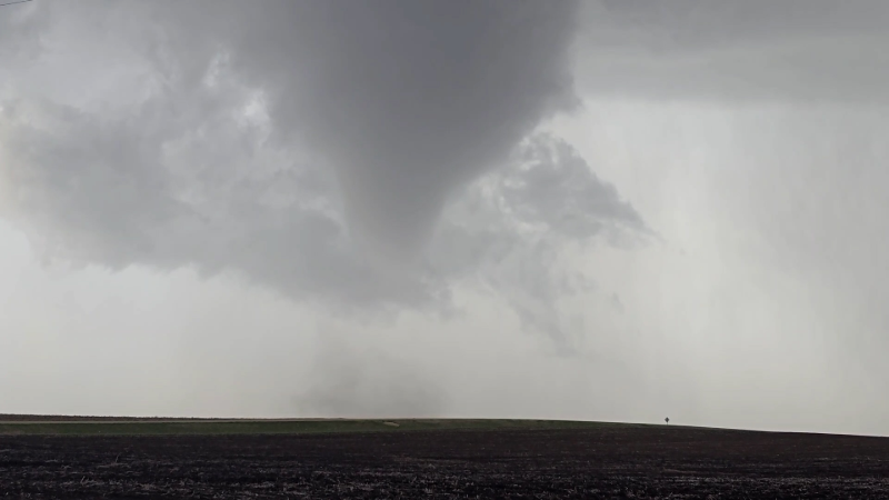 Large stovepipe tornado tears across Minnesota landscape