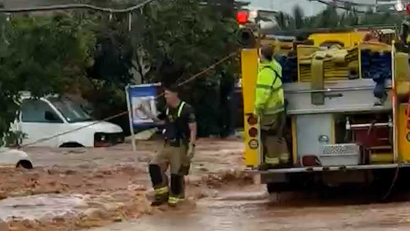 The severe weather watches and warnings depicted in this map are derived from official government sources.