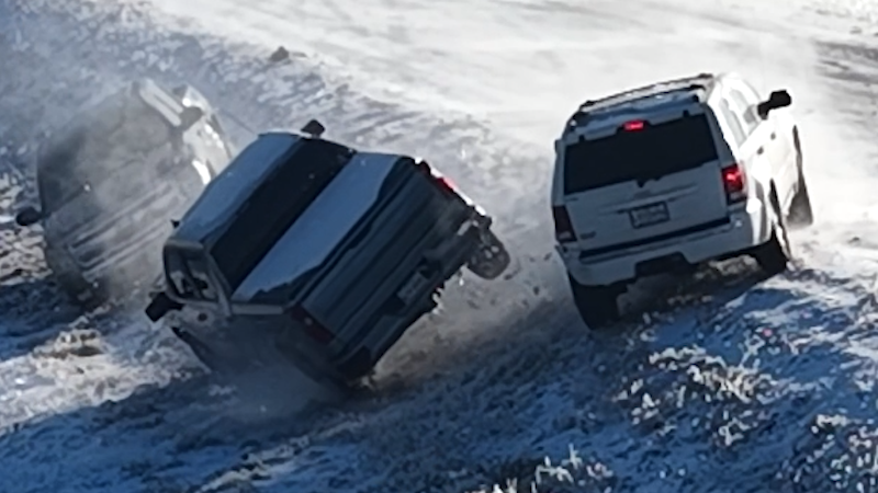 Drone captures multivehicle crash on icy road in Mississippi