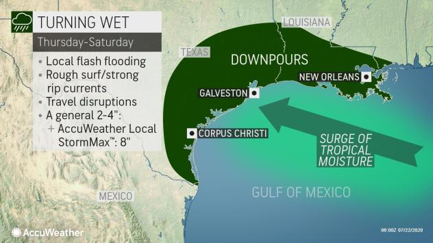 "Rainfall of 2-4 inches is forecast with an AccuWeather Local StormMax™ of 8 inches," Douty said, adding that enough rain is expected to cause localized urban flooding.