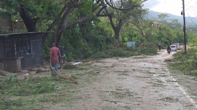 Jamaicans work to clear damage and debris after Hurricane Me...
