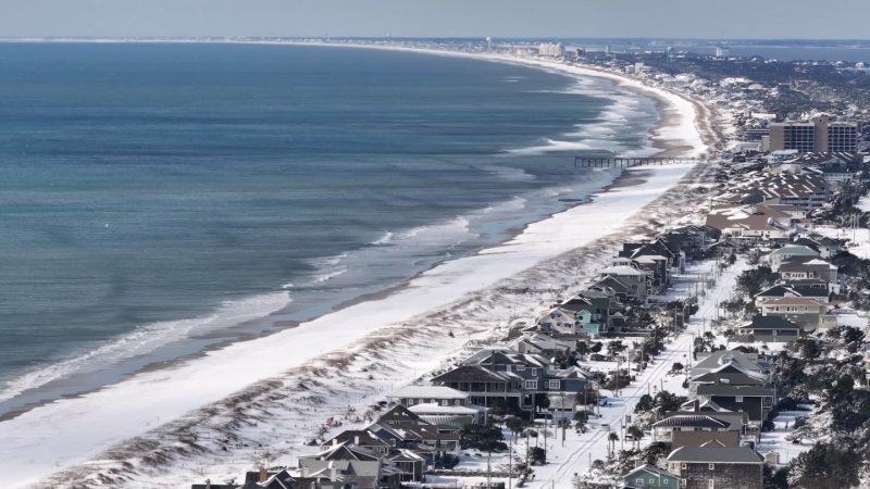 Snow turns North Carolina beaches white