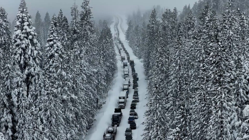Delivery robot struggles to cross flooded Los Angeles street